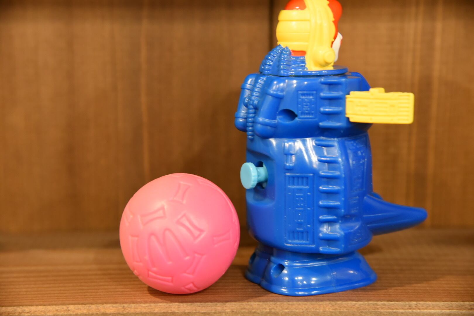 背中のボタンを押すと前にボールが飛び出します。また、ロナルドのみスペースシップにトランスフォームします。